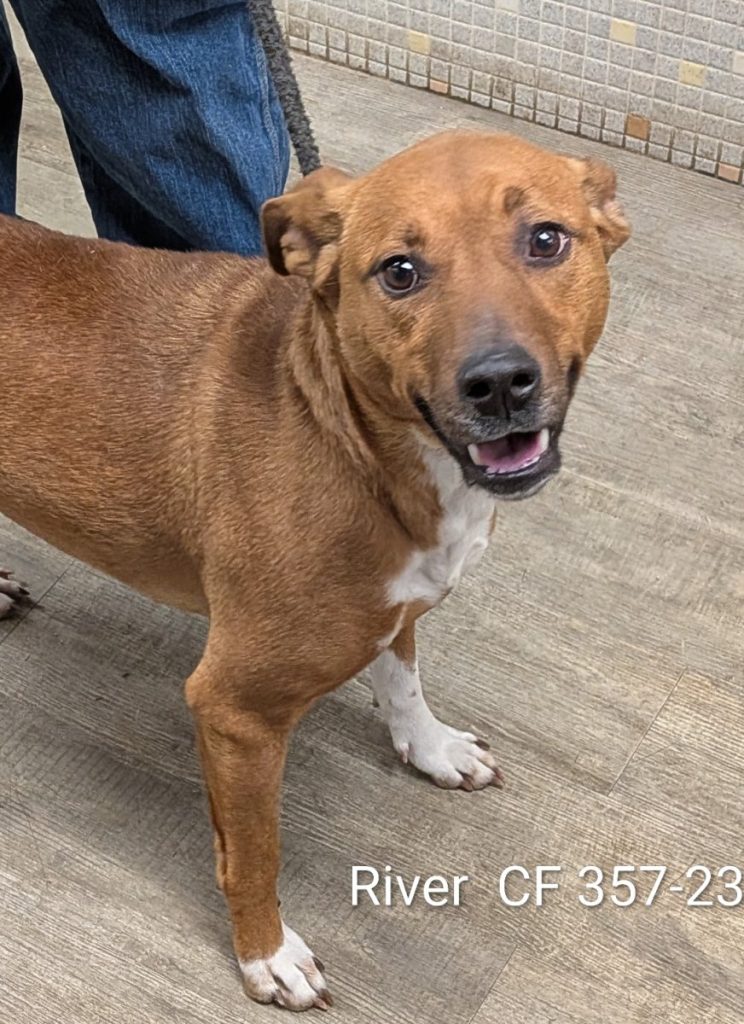 MEET RIVER. RIVER WAS OWNER SURRENDERED TO US. VERY SWEET AN ACTIVE GIRL. SHE IS GOOD AROUND HOUSE CATS BUT STRAY CATS SHE LIKES TO CHASE. SHE LIKES PEOPLE AND TO BE OUTSIDE AND PLAY.